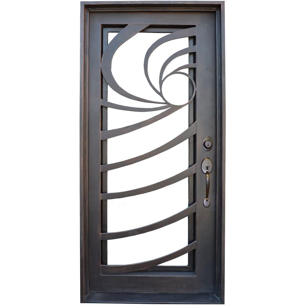 36 in. x 78 in. Contemporary Full Lite Dark Bronze Finished Wrought Iron